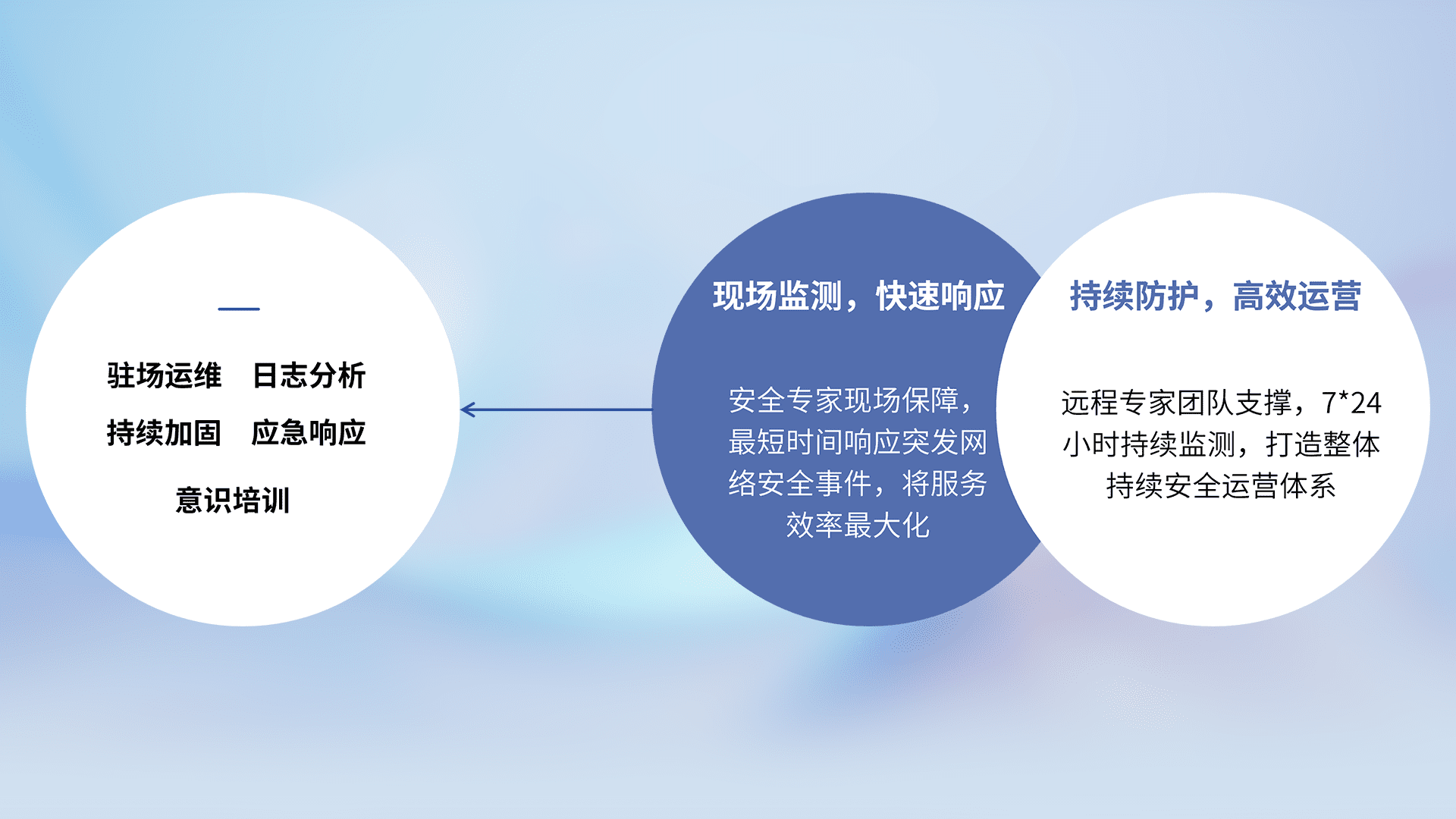 7X24小时持续监测安全事件,保持安全策略有效性,降低资产脆弱性风险,,,精准拦截黑客攻击,,减少被黑客利用的机会,,,,第一时间遏制,,降低损失。。